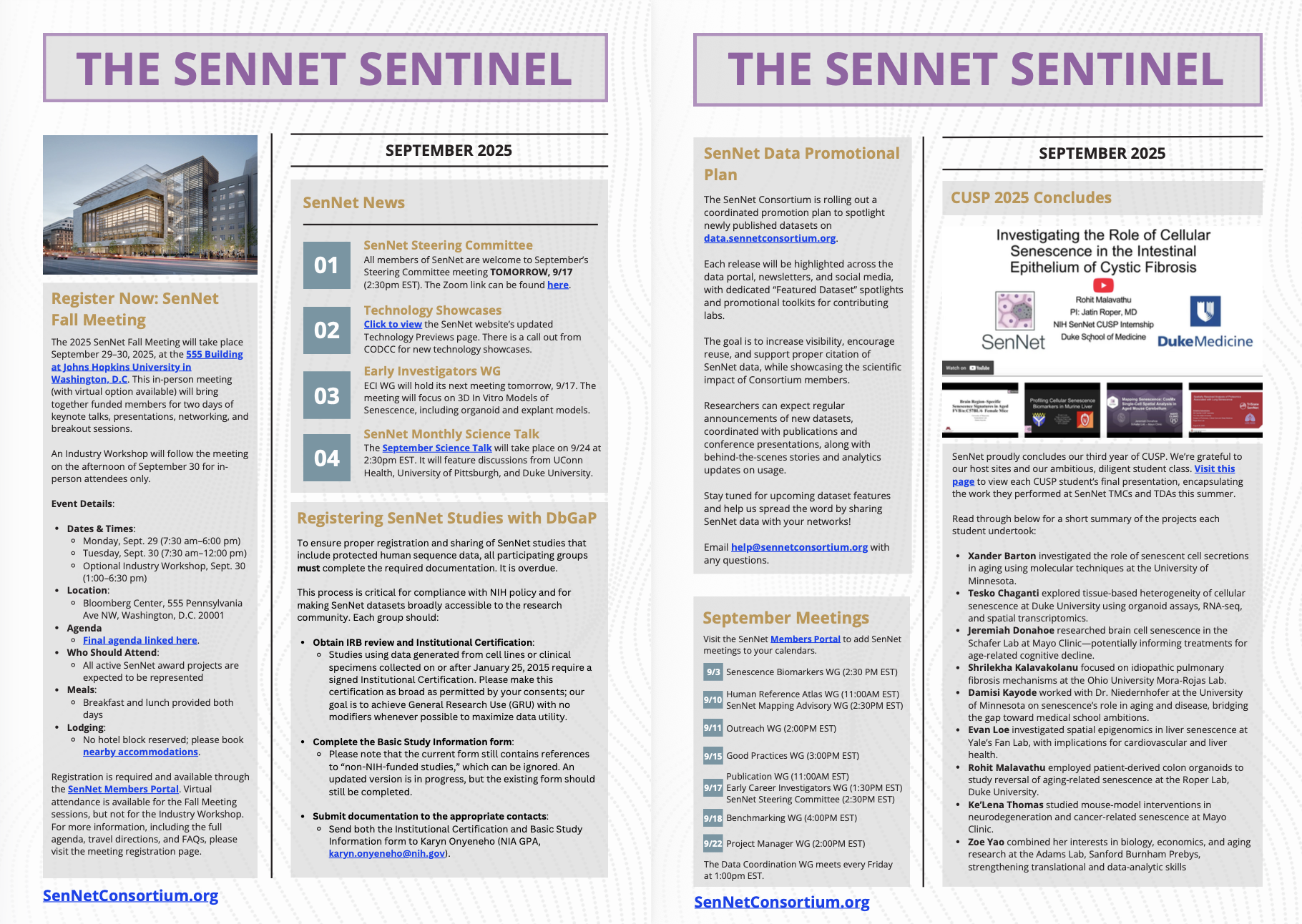 - The 2024 SenNet Annual Meeting webpage is now live: click to view meeting and registration information.